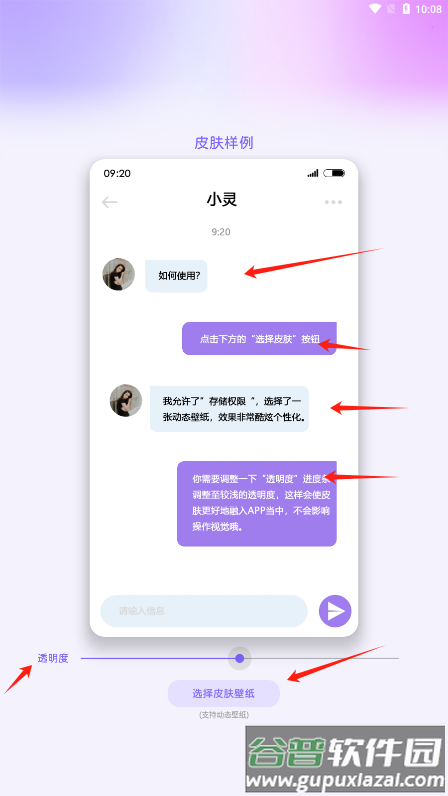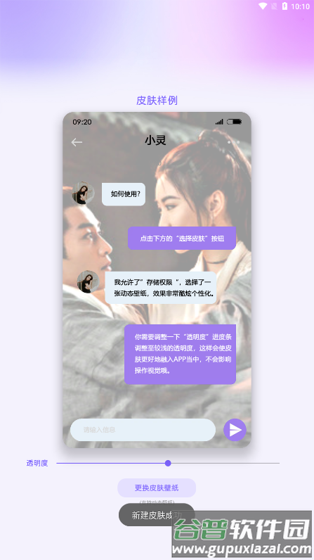 2、App多样式皮肤,支持在任何应用界面添加图片或视频背景,可将亲友或偶像的视频设为皮肤,让使用过程更具陪伴感;