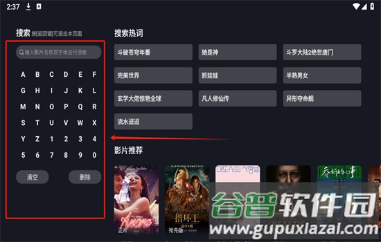 3、使用顶部搜索栏,输入影片名称的首字母即可查找;