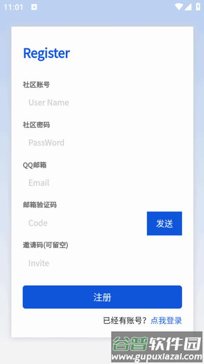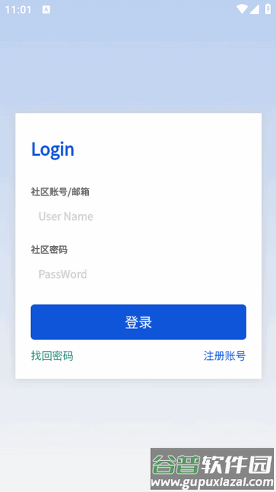 5、注册成功后返回登录页,输入账号密码即可进入社区。