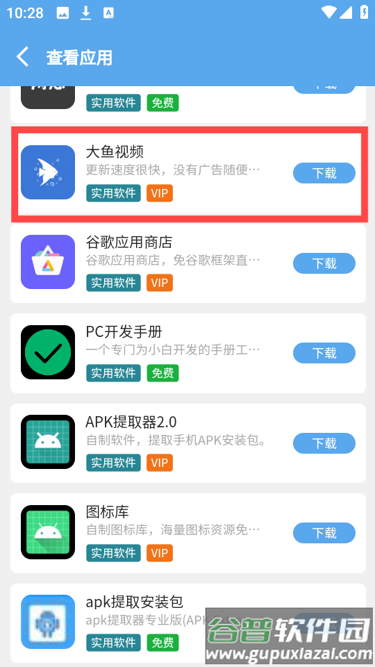 3、选择实用软件分类,找到“大鱼视频”资源项;