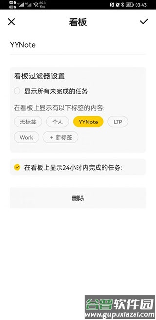 待办看板:用于筛选和分组待办事项,可显示全部未完成任务,或仅显示带特定标签的任务;
