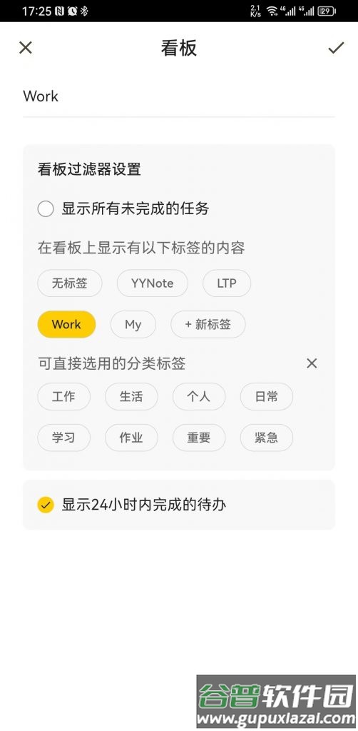 过滤规则:可设置为“显示所有未完成的任务”或“仅显示带指定标签的内容”。