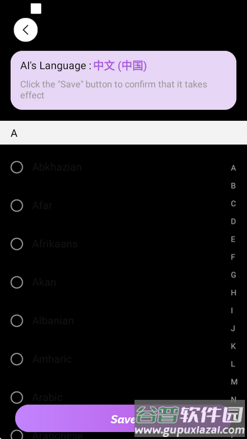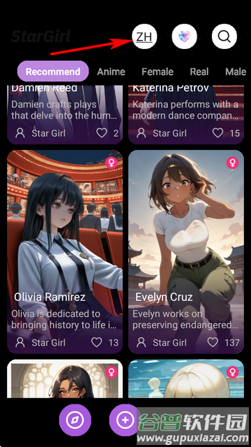 1、启动应用后点击界面顶部的ZH语言选择按钮;