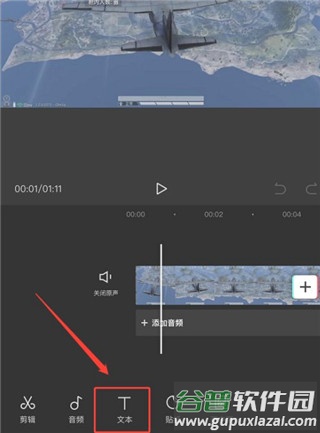 2. 在编辑界面底部菜单栏中找到并点击文本选项;