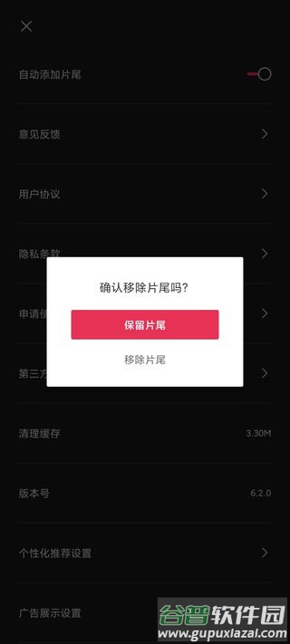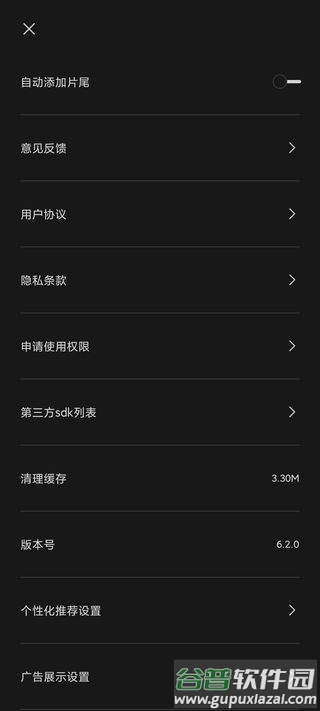 2. 进入设置界面后,找到自动添加片尾选项,关闭其右侧的开关;