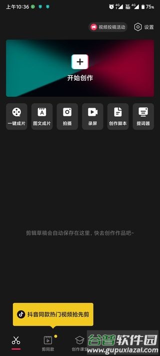 4. 回到主界面后,点击开始创作进入编辑界面;