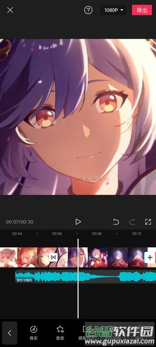 2. 在音频设置中选择音乐功能,进入音乐素材库;