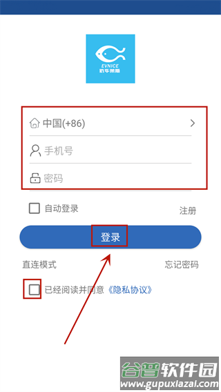 1、下载安装依华莱斯app后,首次使用可通过手机号注册登录。如果不想注册,也能选择直连模式直接使用基础功能。
