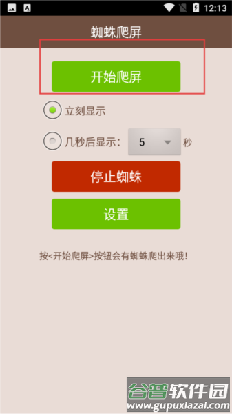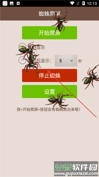 2、按下界面中绿色启动按钮,蜘蛛图像会立刻在屏幕表面移动,形成动态视觉效果。