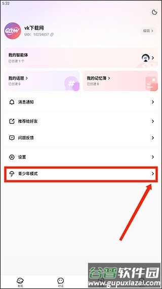 2、跳转至个人中心后,找到菜单列表中的【青少年模式】选项。