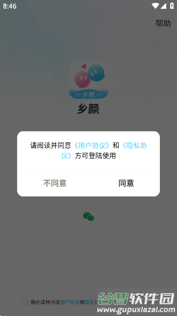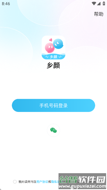 1、下载并安装乡颜交友APP,点击图标启动应用;