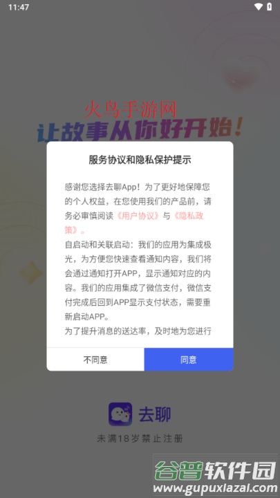 1、从本站获取去聊app官方版并启动应用;
