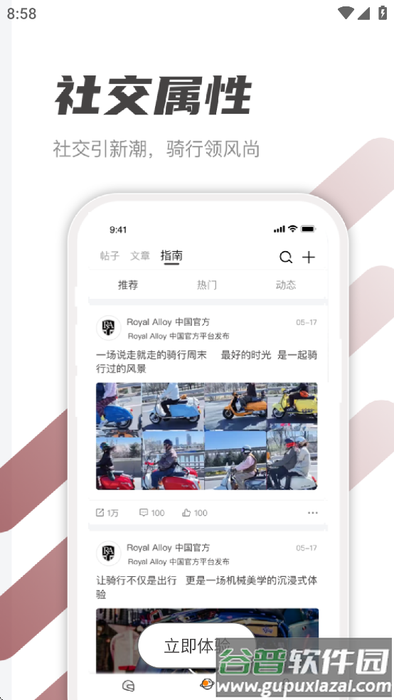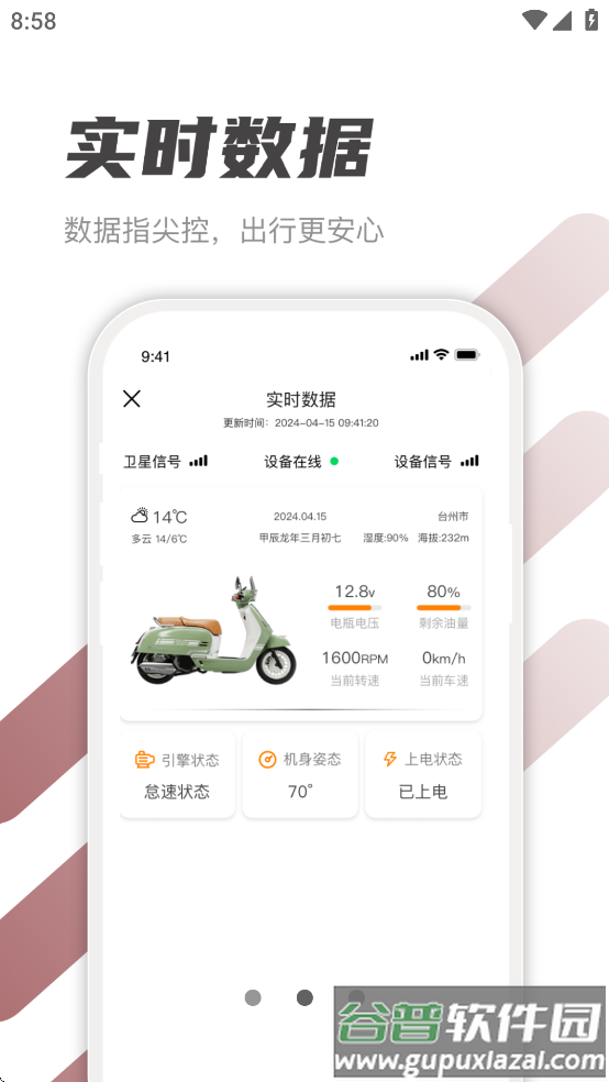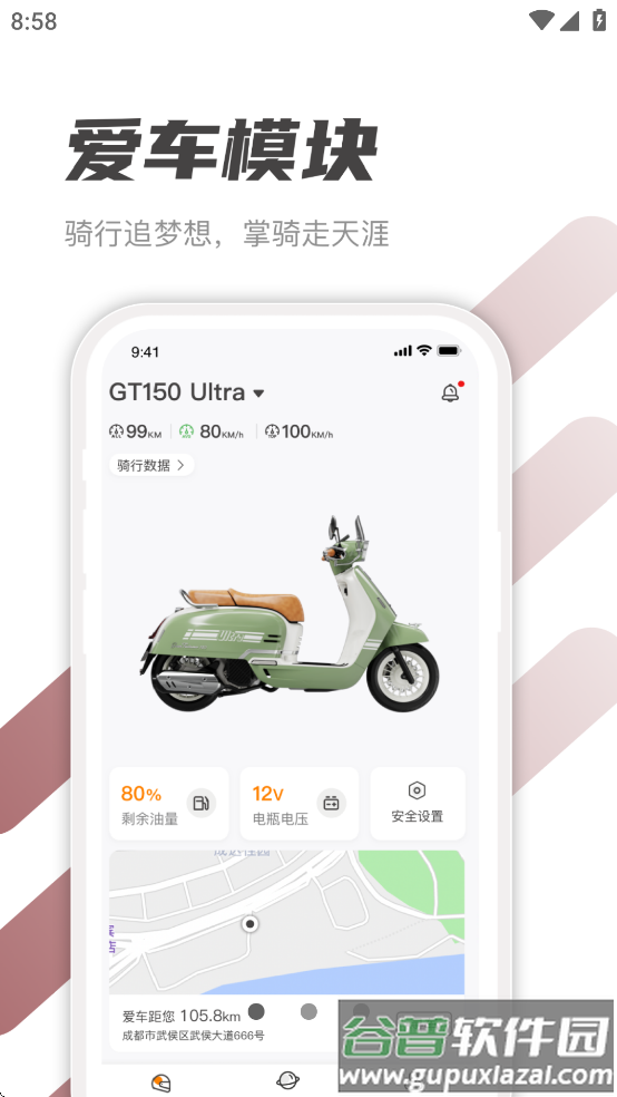 爱车模块:骑行追寻梦想,掌上操控走遍天涯;实时数据:关键信息指尖掌握,出行过程更加放心;社交属性:引领骑行社交新风尚,连接相同兴趣的骑友。