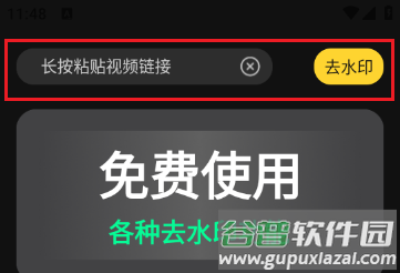 1、启动软件后,如需去除视频水印,可将视频链接复制到app内,或从本地直接导入视频文件;