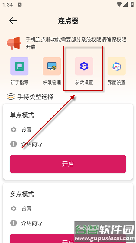 3、选择单点模式时,点击设置按钮调整操作参数;若选择多点模式,操作流程与此相同。