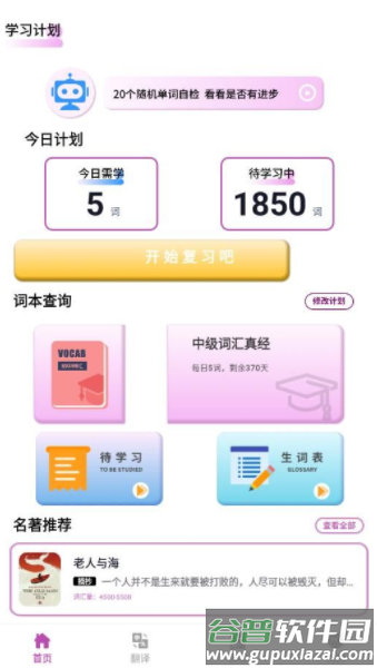 2、进入主页选择适合的单词书,创建个人学习方案;