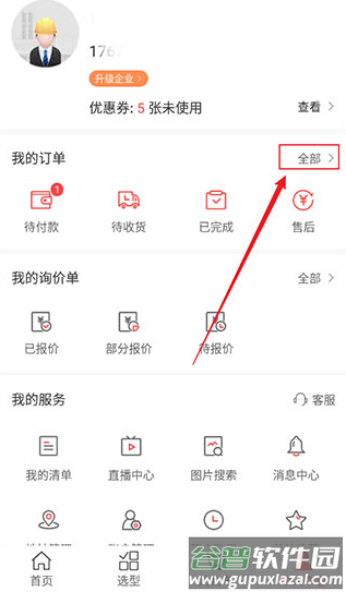 2、在个人中心中找到“我的订单”入口,点击进入后选择“全部”分类;