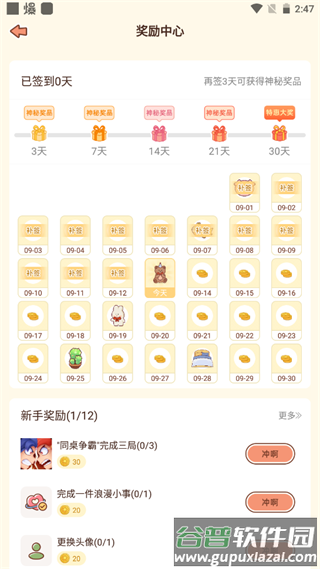 5、通过“奖励中心”每日签到并完成任务,即可积累金币奖励。