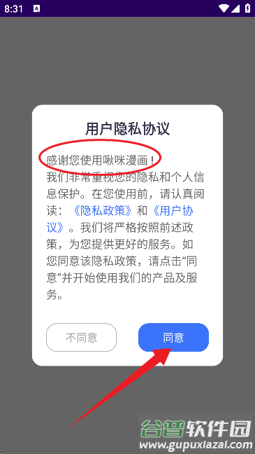 2、首次使用需要同意用户协议和隐私政策;