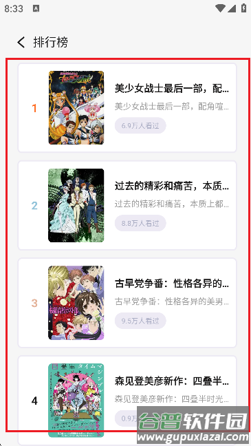 4、点击【排行榜】可以查看平台上各类作品的人气排名;