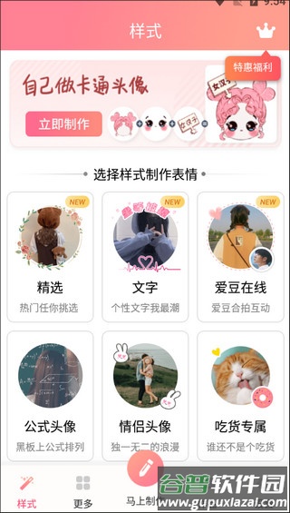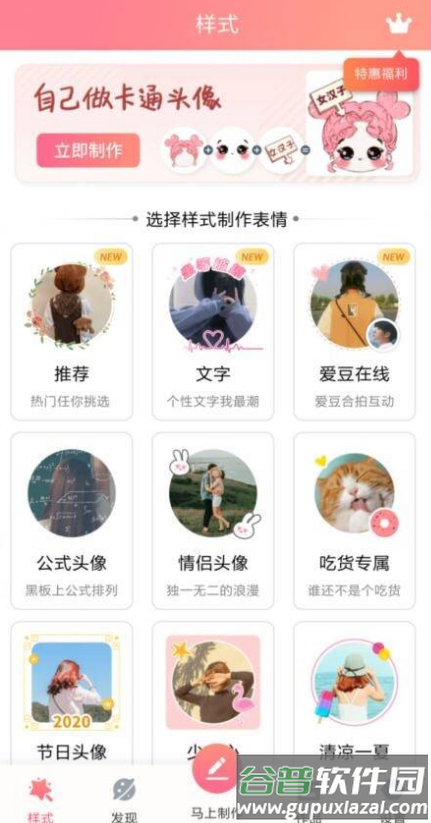 2、新手可从基础头像开始,样式界面提供大量参考模板;