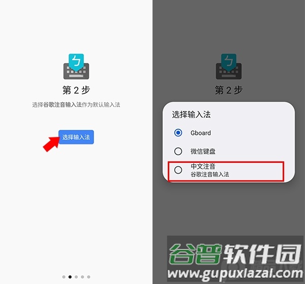 3、回到引导页,根据提示选择输入法,在弹出的列表中选择中文注音(谷歌注音输入法);