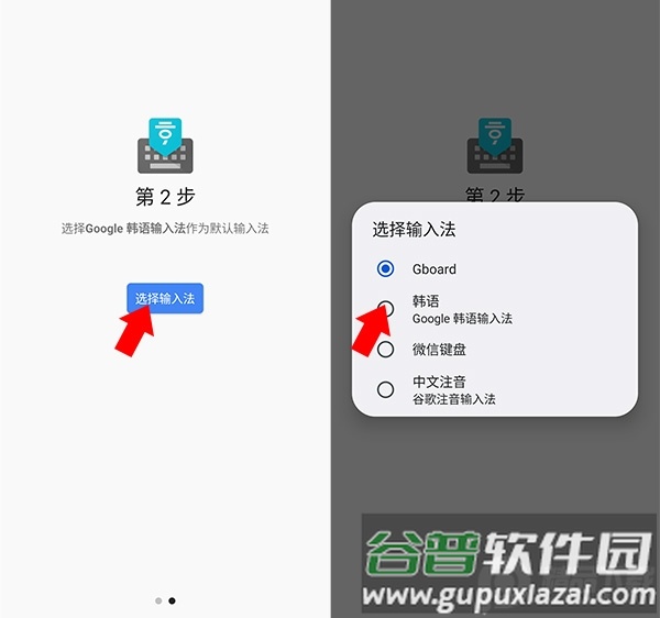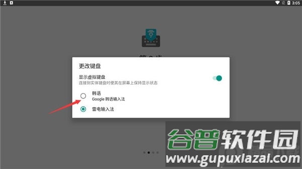 2、返回初始界面,点击选择输入法选项,在弹出的列表中找到韩语(google韩语输入法)并选中。