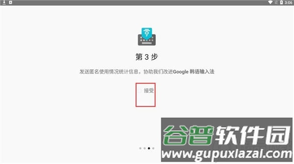 1、安装完成后打开应用,进入引导界面,点击设置按钮并启用输入法。