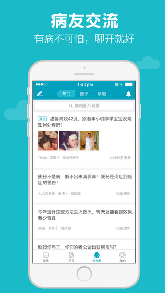 3、[病友交流]与众多相同病情的患者在线分享经验互相支持;