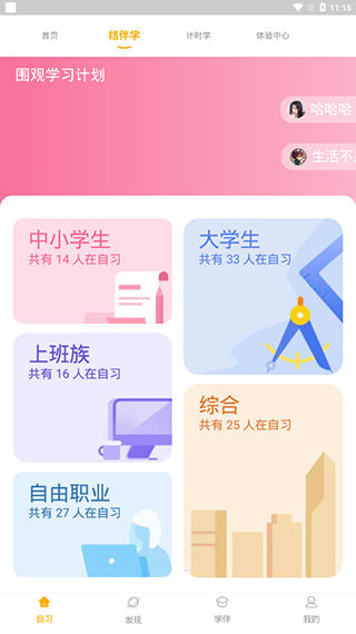 2、支持加入各类自习课堂,快速进入专注状态。