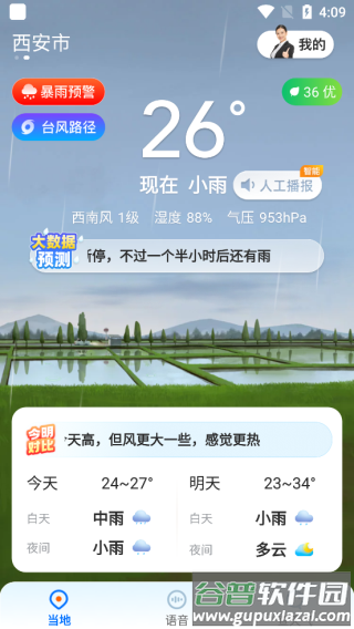 分钟级降水预报,基于中央气象台数据,不下雨也能安心出行;