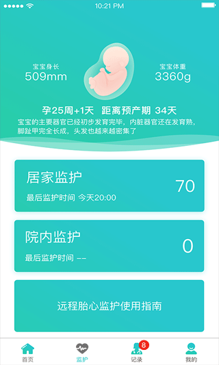支持无线连接微胎心监护仪,孕妇可随时监测胎心并上传数据,由专属医生判读和指导。