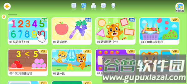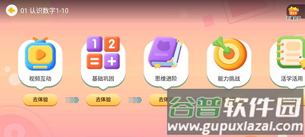 孩子可以从认识数字1到10开始接触数学,每个阶段的课程都配有相应的学习环节。