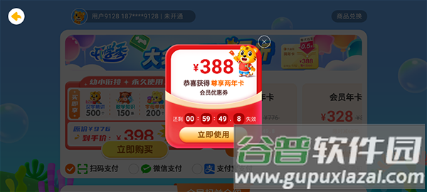 家长使用手机号或微信扫码登录后,会看到会员优惠活动介绍页面。