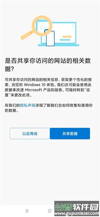1、从本站下载微软Edge浏览器手机版,打开后点击共享数据登录微软账号,即可与电脑端同步信息;