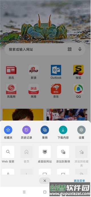 3、点击下方菜单,可对浏览器进行设置并使用各项功能;