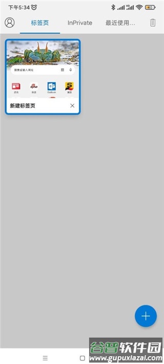 5、点击右下角页面栏,可使用私密浏览或查看最近访问的页面。