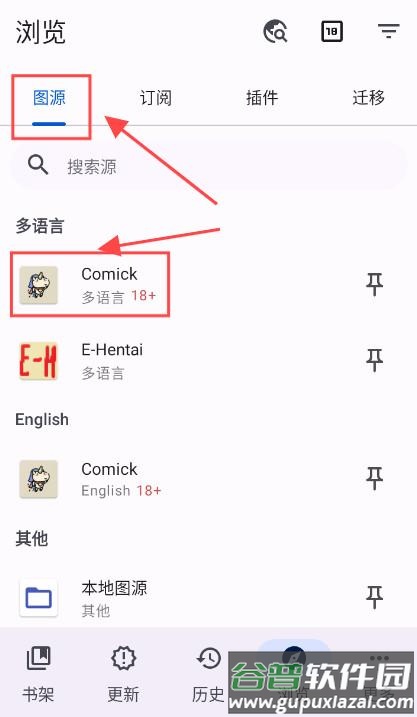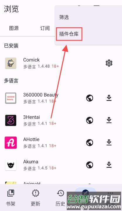 2、插件安装完成后,点击图源栏目,即可通过已添加的插件浏览漫画内容;