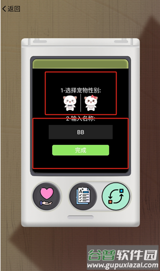 2、选择宠物性别,输入宠物名字,点击【完成】;