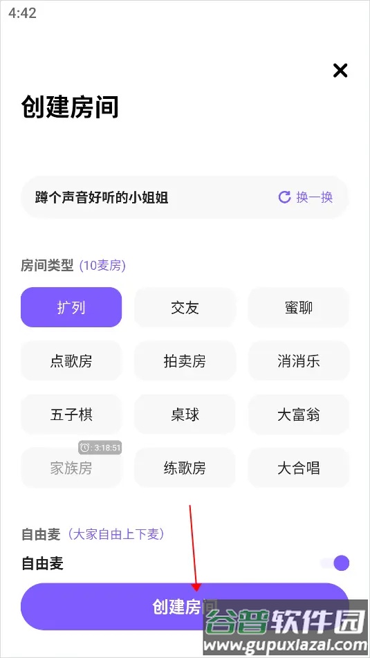 3、选择房间类型并填写房间描述,点击“创建房间”按钮;