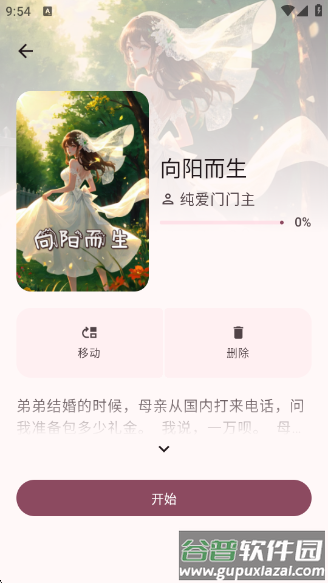 3、点击想阅读的小说进入详情页,选择“开始”按钮。