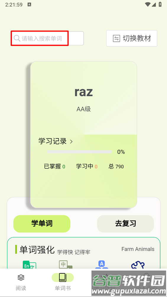 4、在“单词书”区域,可通过搜索功能查找并学习特定单词。