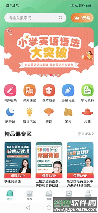 1、课本点读:支持对小学英语课本即点即读,并拥有单句重复、单元循环、整册朗读、个性化复读、语速调节和中文翻译等功能,是复习的好工具;原声发音准确清晰,高清图片保护视力。