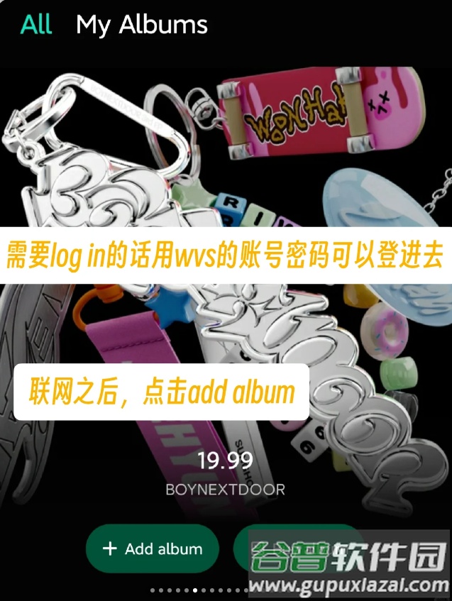 3、如需登录,使用Weverse账号密码即可;联网后点击添加专辑按钮。