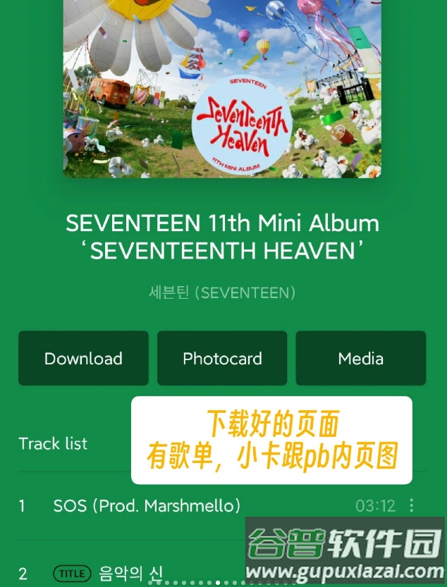 6、下载完成后页面显示歌单、小卡及写真内页图片。