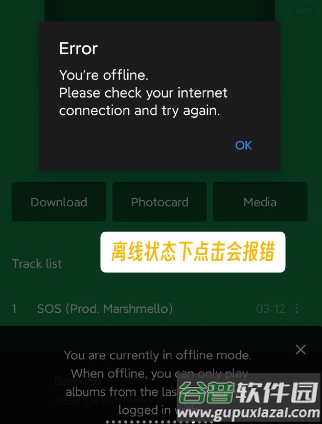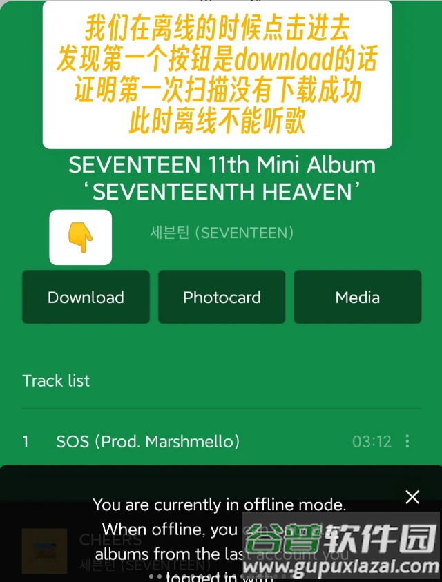 11、离线状态下若专辑页显示下载按钮,表示首次未下载成功,此时无法播放歌曲。