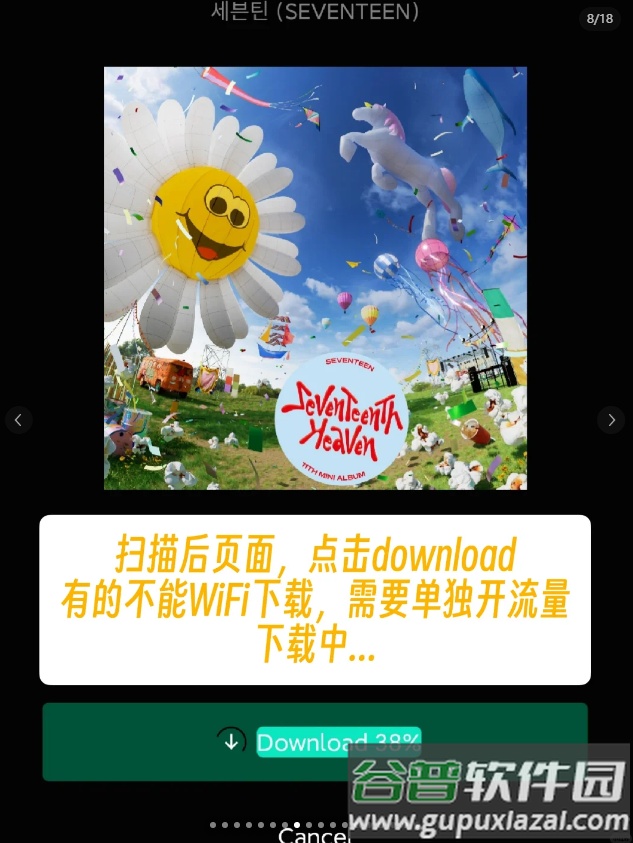 5、扫描成功后进入详情页,点击下载按钮;部分下载需使用流量,WiFi可能无法完成。