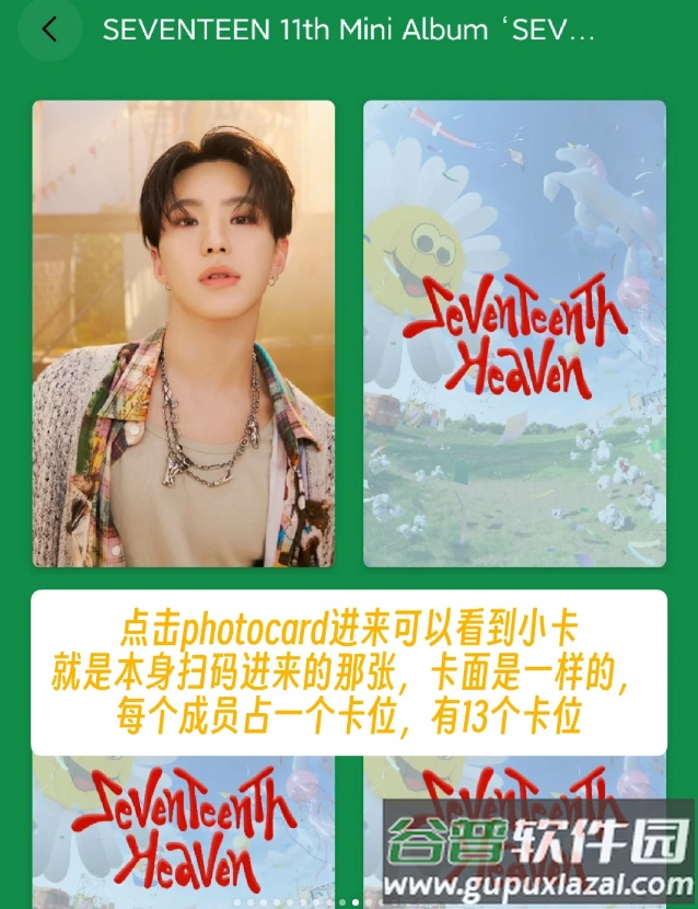 7、点击照片卡可查看对应小卡,卡面与扫码的二维码一致;每位成员占据一个卡位,共设13个卡位。