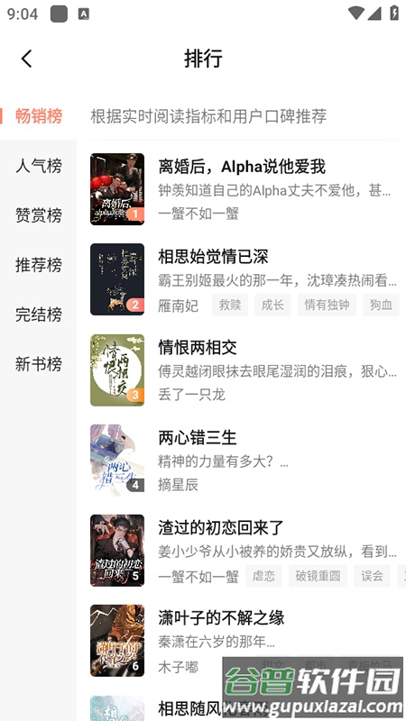 2、也可以在排行页面,查看各种热门小说的榜单。