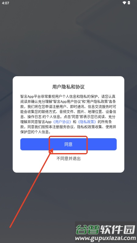2、打开软件后,仔细阅读并同意相关用户协议;